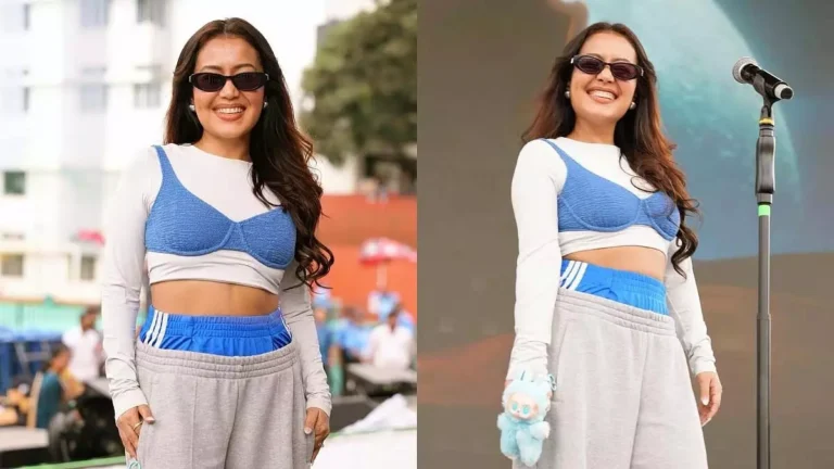 उन्होंने इंस्टाग्राम पर कई तस्वीरें शेयर की हैं, जिसमें वह स्टेज पर लाइव परफॉर्म करने से पहले रिहर्सल करती नजर आ रही हैं। तस्वीरों में नेहा एक सफेद फुल-स्लीव फिटेड क्रॉप टॉप और उसके ऊपर ब्लू ब्रालेट-स्टाइल टॉप पहने नजर आ रही हैं। उन्होंने अपने लुक को लो-वेस्ट पहने बैगी ग्रे स्वेटपैंट के साथ स्टाइल किया है, जिससे उनके ब्लू ट्रैक शॉर्ट्स का कमरबंद बाहर दिख रहा है।