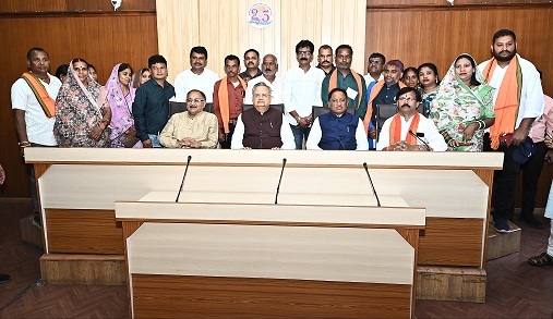 रायपुर, 15 जुलाई 2025/ मुख्यमंत्री श्री विष्णुदेव साय से छत्तीसगढ़ विधानसभा के समिति कक्ष में राजनांदगांव जिले के नागरिकों के प्रतिनिधिमंडल ने सौजन्य मुलाकात की। प्रतिनिधिमंडल को संबोधित करते हुए मुख्यमंत्री श्री साय ने कहा कि हमारी सरकार पूरी पारदर्शिता के साथ निरंतर जनहित में कार्य कर रही है। प्रशासनिक कार्यप्रणाली में नवाचार को प्रोत्साहित करते हुए सभी प्रक्रियाओं को चरणबद्ध रूप से ऑनलाइन किया जा रहा है, जिससे नागरिकों को सुगम, सरल और सुलभ सेवाएं उपलब्ध हो रही हैं।