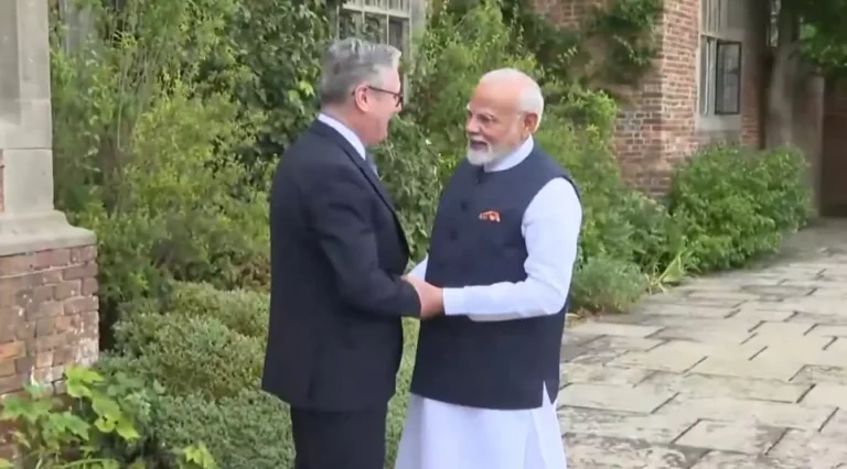 नई दिल्ली: प्रधानमंत्री नरेंद्र मोदी ब्रिटेन के दो दिनों के दौरे पर हैं. इस दौरान उन्होंने ब्रिटिश पीएम किएर स्टार्मर से लंदन में मुलाकात की, जहां द्विपक्षीय वार्ता के दौरान भारत और ब्रिटेन ने ट्रेड डील (FTA) समझौते पर साइन किए.