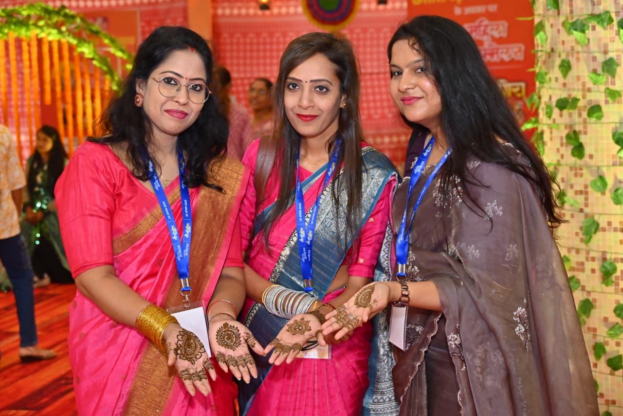 *महिला सम्मेलन में महतारियों का उत्साह, तीजहारिन बहनों ने लगवाई मेंहदी*