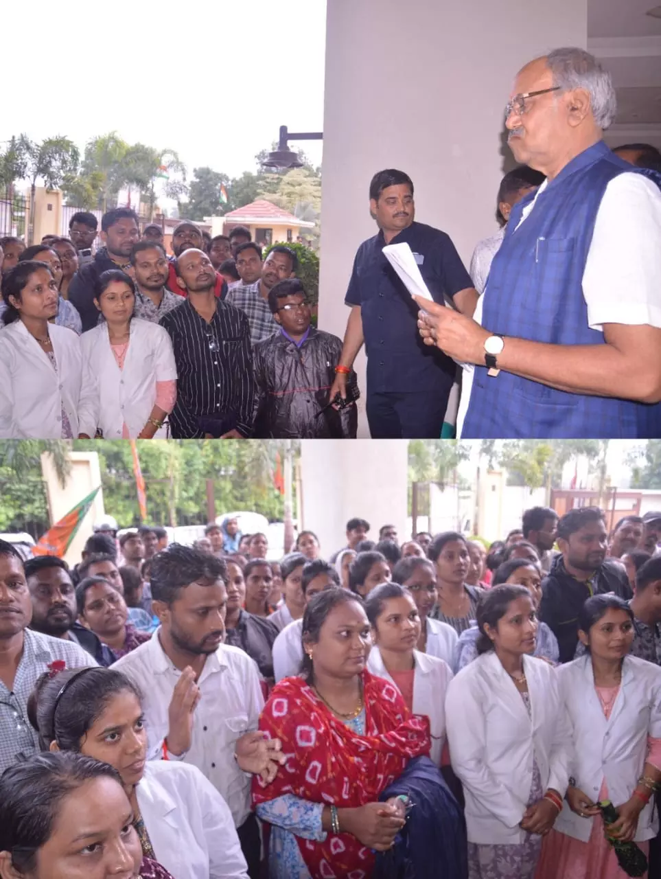 रायपुर। राष्ट्रीय स्वास्थ्य मिशन (एनएचएम) के हड़ताली कर्मचारियों ने अपनी 10 सूत्रीय मांगों को लेकर आज रायपुर सांसद एवं वरिष्ठ भाजपा नेता बृजमोहन अग्रवाल से भेंट कर उन्हें ज्ञापन सौंपा। लगभग दो सप्ताह से आंदोलनरत एनएचएम कर्मचारियों का नेतृत्व छत्तीसगढ़ प्रदेश एनएचएम कर्मचारी संघ के अध्यक्ष डॉ. अमित कुमार मिरी ने किया।