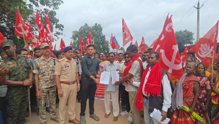 Narayanpur. नारायणपुर। शुक्रवार को नारायणपुर जिले का माहौल कुछ अलग ही रहा, जब सीपीआई कार्यकर्ताओं ने अपने आठ सूत्रीय मांगों को लेकर जिले में बड़े पैमाने पर प्रदर्शन किया। शहर की गलियों में सुबह से ही लाल झंडों की गूंज सुनाई देने लगी। झोले में बैनर और हाथों में नारे लिखी तख्तियों के साथ कार्यकर्ता गांव-गांव से शहर की ओर बढ़े और हाई स्कूल मैदान पर सैकड़ों की भीड़ जमा हुई। भीड़ में महिलाएं, बुजुर्ग और युवा शामिल थे। उनके चेहरे पर नाराजगी और आंखों में हक की लड़ाई का जज़्बा साफ नजर आ रहा था। उच्च स्वर में नारे लगाए गए – “वादे निभाओ, हक दिलाओ”, “खनिज की लूट बंद करो”, “आदिवासियों का शोषण बंद करो।”