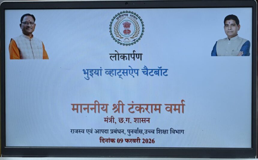 रायपुर। मुख्यमंत्री विष्णुदेव साय के नेतृत्व में छत्तीसगढ़ में डिजिटल गवर्नेंस को और अधिक सशक्त बनाते हुए आज नागरिक सुविधा के क्षेत्र में दो महत्वपूर्ण और अभिनव पहल का शुभारंभ किया गया। राजस्व मंत्री टंकराम वर्मा ने अपने निवास कार्यालय में भुइयां व्हाट्सऐप चैटबॉट सेवा तथा ऑटो-डाइवर्ज़न (पुनर्निर्धारण) सुविधा का औपचारिक राज्यव्यापी शुभारंभ किया। ये दोनों डिजिटल पहल राज्य में ई-गवर्नेंस, पारदर्शिता और नागरिक-केंद्रित प्रशासन की दिशा में एक बड़ा कदम हैं। इन सेवाओं के माध्यम से नागरिकों को अब राजस्व संबंधी सेवाओं के लिए कार्यालयों के चक्कर नहीं लगाने पड़ेंगे और कार्यवाही पूरी तरह सरल, तेज़ और पारदर्शी होगी।