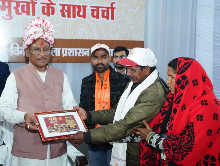 मुख्यमंत्री श्री विष्णु देव साय ने कोरिया प्रवास के दौरान झुमका जलाशय परिसर में ‘श्री रामलला दर्शन योजना’ के तहत अयोध्या धाम की पावन यात्रा कर लौटे श्रद्धालुओं से आत्मीय भेंट की। मुख्यमंत्री ने श्रद्धालुओं का हाल-चाल जाना और उनके आध्यात्मिक एवं भक्तिमय अनुभवों को बड़े ध्यानपूर्वक सुना। श्रद्धालुओं ने मुख्यमंत्री को बताया कि छत्तीसगढ़ शासन के सहयोग से उन्हें निःशुल्क अयोध्या धाम के दर्शन का सौभाग्य प्राप्त हुआ। उन्होंने कहा कि शासन द्वारा सम्मानपूर्वक यात्रा की समुचित व्यवस्था किए जाने से यह यात्रा उनके लिए अत्यंत सहज और अविस्मरणीय बन गई।