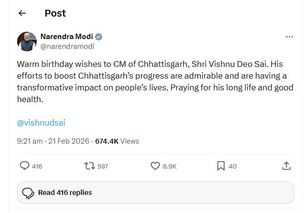 रायपुर: मुख्यमंत्री विष्णुदेव साय का आज 62वां जन्मदिन है। इस अवसर पर मुख्यमंत्री आज जशपुर जिले के दौरे पर रहेंगे और अपना जन्मदिन अपने गृह ग्राम बगिया में धार्मिक अनुष्ठान के साथ मनाएंगे। तय कार्यक्रम के अनुसार मुख्यमंत्री साय सुबह 9 बजे मुख्यमंत्री निवास सिविल लाइन रायपुर से रवाना होकर पुलिस ग्राउंड हेलीपैड से हेलीकॉप्टर द्वारा बगिया के लिए प्रस्थान करेंगे। सुबह 10.30 बजे बगिया हेलीपैड पर आगमन के बाद वे अपने निज निवास पहुंचेंगे, जहां जन्मदिन के अवसर पर सत्यनारायण व्रत कथा का आयोजन किया जाएगा। कार्यक्रम पूर्ण होने के बाद मुख्यमंत्री साय अपराह्न 3.40 बजे बगिया से प्रस्थान कर हेलीकॉप्टर से रायपुर लौटेंगे और शाम करीब 5.20 बजे मुख्यमंत्री निवास पहुंचेंगे।