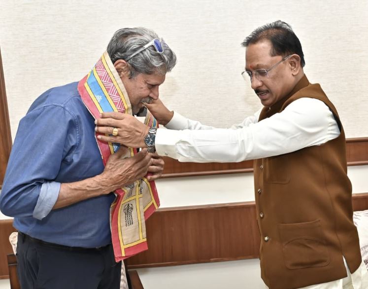 मुख्यमंत्री श्री विष्णु देव साय से आज नया रायपुर स्थित मुख्यमंत्री निवास कार्यालय में भारतीय क्रिकेट टीम के पूर्व कप्तान कपिल देव ने सौजन्य मुलाकात की। मुख्यमंत्री ने श्री कपिल देव को बेल मेटल से बनी प्रतिकृति, पुण्यभूमि छत्तीसगढ़ कॉफी टेबल बुक भेंट कर उनका अभिनंदन किया। मुलाकात के दौरान दोनों के बीच प्रदेश में खेलों को बढ़ावा देने, आधुनिक खेल अधोसंरचना के विकास, अंतरराष्ट्रीय स्तर के प्रशिक्षण केंद्र तथा प्रतिभाशाली खिलाड़ियों को तैयार करने जैसे विषयों पर विस्तृत चर्चा हुई। इस दौरान मुख्यमंत्री के प्रमुख सचिव श्री सुबोध कुमार सिंह उपस्थित थे।